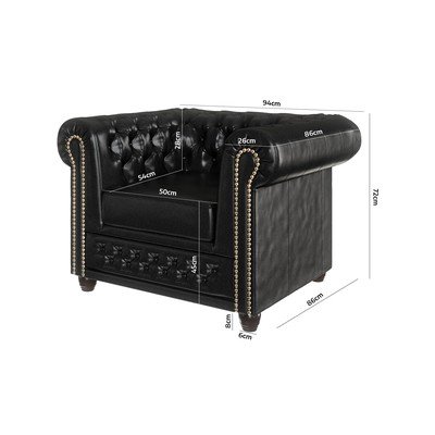 Chesterfield, con rivestimento in finta pelle, nera