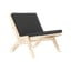 La struttura della poltrona è realizzata in pino massiccio e le sue caratteristiche gambe inclinate aggiungono leggerezza e stabilità.