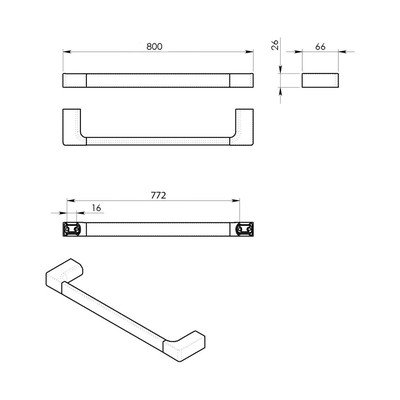 Da parete, in metallo, bianco, 80x7 cm, altezza totale 3 cm