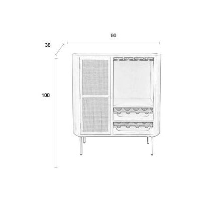 Cantinetta AmayaIn rattan, in MDF, color crema, numero di bottiglie 8, color crema, larghezza totale 90 cm, altezza totale 100 cm, profondità totale 38 cm