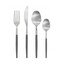 Le posate sono realizzate in acciaio inossidabile opaco con manici in poliossimetilene (POM). Questo materiale offre una comoda sensazione di presa, resistenza ai graffi e facile manutenzione. Sia l'acciaio inox che il POM sono riciclabili, il che sottolinea l'aspetto ecologico del prodotto.