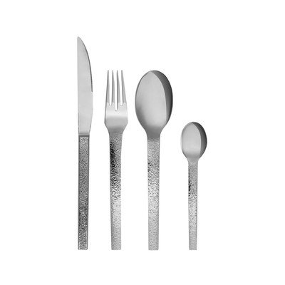 I manici sono decorati con un'elegante superficie strutturata che conferisce all'intero set un aspetto moderno. Le singole posate sono alte 24, 21, 20 e 15 cm. Questo set combina perfettamente eleganza senza tempo e praticità.