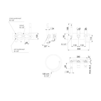 Questo rubinetto a scomparsa in ottone è progettato per due uscite e può quindi essere collegato, ad esempio, a una doccetta e a un soffione. È possibile passare da una all'altra in tutta comodità grazie all'interruttore integrato. Ha una cartuccia di 35 mm di diametro, una doccetta e un tubo flessibile lungo 150 cm.