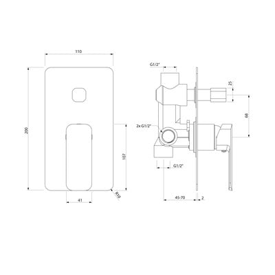 Questo rubinetto a scomparsa in ottone è progettato per due uscite e può quindi essere collegato, ad esempio, a una doccetta e a un soffione. È possibile passare da una all'altra in tutta comodità grazie all'interruttore rotante integrato. Poiché viene fornito singolarmente, tutti gli accessori devono essere acquistati separatamente. Infatti, a parte il miscelatore, l'unica cosa che troverete nella confezione è il corpo di montaggio necessario per l'installazione.