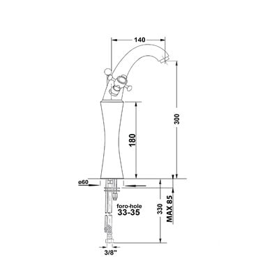 Questo rubinetto in ottone con comando colpisce per il suo design retrò. È dotato di un braccio girevole e di un attacco da 3/8". Oltre al rubinetto, troverai anche tubi di alimentazione flessibili, una bocca di erogazione bloccabile e le indicazioni per l'acqua calda e fredda in ceco e in inglese.