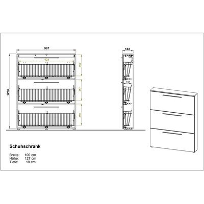 Scarpiera WildomarCon ante ribaltabili, con effetto rovere, in truciolato, trattamento della superficie: melamina, color antracite/di colore naturale, larghezza totale 100 cm, altezza totale 129 cm, profondità totale 19 cm