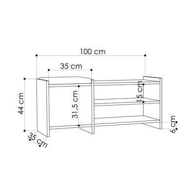 Con sedutaIn MDFTrattamento della superficie: melaminaBiancaNumero di paia di scarpe 10 Larghezza totale 100 cmAltezza totale 44 cmProfondità totale 35 cm