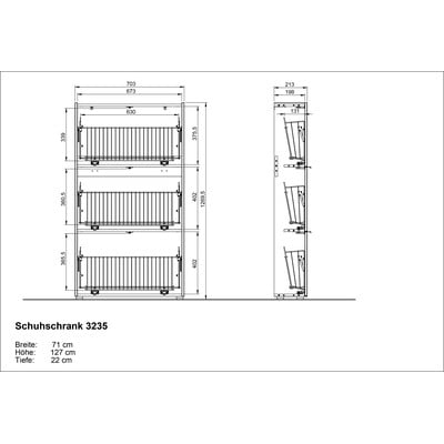 Scarpiera AmecaCon ante ribaltabili, in truciolato, trattamento della superficie: melamina, con trama opaca, color antracite, numero di paia di scarpe 9 , larghezza totale 71 cm, altezza totale 127 cm, profondità totale 22 cm