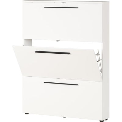 Scarpiera UtahCon ante ribaltabili, in truciolato, trattamento della superficie: melamina, con trama opaca, bianca, larghezza totale 100 cm, altezza totale 129 cm, profondità totale 19 cm