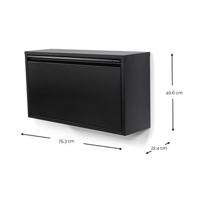 Scarpiera BillyCon ante ribaltabili/da parete, in metallo, trattamento della superficie: verniciatura a polvere, nera, numero di paia di scarpe 6 , larghezza totale 75 cm, altezza totale 41 cm, profondità totale 22 cm