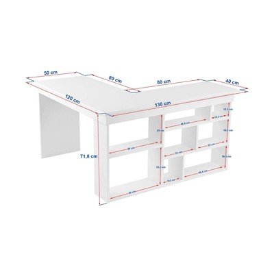Scrivania angolare Vesper del brand Kalune Design. Offre ampio spazio di archiviazione grazie alle mensole integrate.
