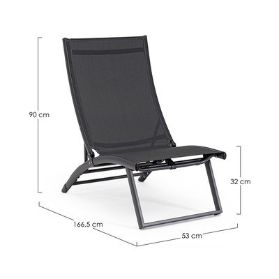 Regolabile/pieghevoleIn metalloColor antracitePortata 110 kgLarghezza totale 53 cmAltezza totale 90 cmProfondità totale 166,5 cm