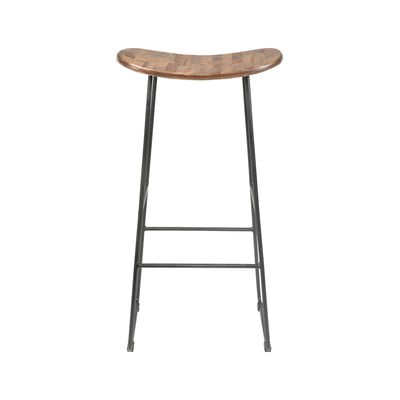 Lo sgabello da bar White Label ha una seduta realizzata in teak riciclato, che aggiunge un tocco originale al design altrimenti minimalista. Le gambe dello sgabello da bar hanno una finitura in plastica che aiuta a proteggere il pavimento e ad attutire il rumore quando la sedia viene spostata.