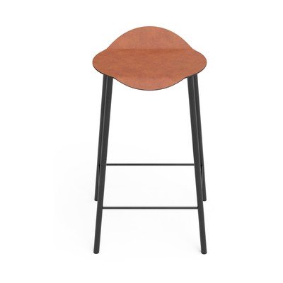 La seduta dello sgabello da bar è rivestita in pelle riciclata, per garantire comfort e facilitare la pulizia. L'aspetto generale è completato dalle gambe sottili, che aggiungono leggerezza e stabilità alla sedia.