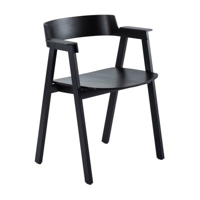 La sedia Flip del brand Gazzda è caratterizzata dai caratteristici braccioli che le hanno dato il nome e il carattere visivo. È realizzata in legno massiccio d'epoca con una finitura liscia e laccata, che la rende resistente e di facile manutenzione.