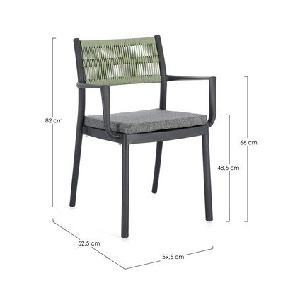 La sedia da giardino Alvin di Bizzotto unisce design moderno e comfort. La sedia è realizzata in plastica resistente in un elegante colore grigio che si abbina facilmente agli altri mobili da giardino. È dotata di braccioli e di un cuscino sfoderabile di colore grigio per un comfort maggiore.