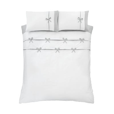 Set copripiumino e federa bianco e grigio per letto matrimoniale e per letto esteso 230x220 cm Milo Bow – Catherine Lansfield