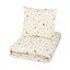 È realizzata in morbido cotone organico a trama satinata e vanta la certificazione GOTS. Il set comprende un copripiumino di 70 x 100 cm e una federa di 40 x 45 cm. Entrambe le fodere si chiudono con una cerniera YKK. Il set comprende anche una borsa in tessuto abbinata.