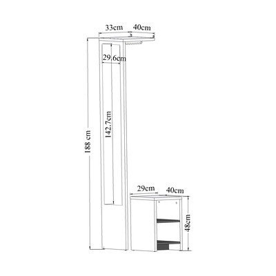 Con effetto rovereIn truciolatoTrattamento della superficie: melaminaDi colore naturaleLarghezza totale 40 cmAltezza totale 188 cmProfondità totale 33 cm