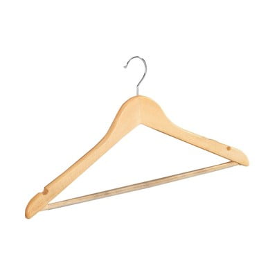 Robusta gruccia in legno, adatta anche per abiti da uomo voluminosi.