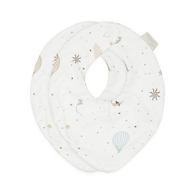 Caratterizzati da un motivo di stelle, mongolfiere e altri elementi da sogno, questi bavaglini non solo proteggono i vestiti, ma funzionano anche come sciarpa. Grazie a questa versatilità e alla qualità del materiale, hanno una durata maggiore.