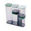 Il set di contenitori Podium con supporto del brand Joseph Joseph è una soluzione pratica ed elegante per conservare gli alimenti secchi. Il supporto consente di estrarre facilmente i singoli vasetti, indipendentemente dalla loro posizione.
