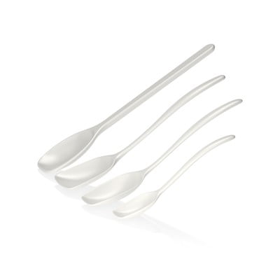 Grazie a quattro diverse dimensioni, questo set di cucchiai da cucina del brand premium Rosti è in grado di gestire la maggior parte delle attività di preparazione, cottura e servizio dei cibi. Come il resto della gamma, sono realizzati in un innovativo materiale plastico Durostima® caratterizzato da durata, resistenza alle crepe e temperature fino a 150 °C (per due ore). Grazie alla stessa combinazione di colori delle ciotole Margrethe, è possibile abbinarle o combinarle.