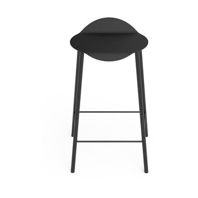 La seduta dello sgabello da bar è rivestita in pelle riciclata, per garantire comfort e facilitare la pulizia. L'aspetto generale è completato dalle gambe sottili, che aggiungono leggerezza e stabilità alla sedia.
