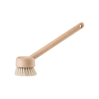 Questa spazzola per piatti di Zone è realizzata in legno di faggio certificato FSC™ trattato con cera d'api. Insieme al manico rotondo, garantisce una presa e una manipolazione confortevole. Grazie al foro, è possibile appenderla ovunque.