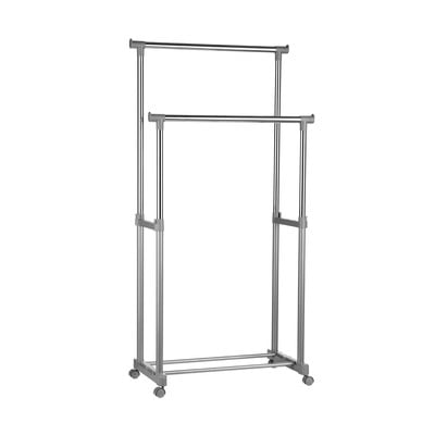Stand appendiabitiAllungabile/su ruote, in metallo, argentato, 80x43 cm, altezza totale 152 cm
