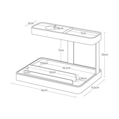 Il pratico supporto di Yamazaki consente di riporre e caricare tutti i dispositivi in un unico posto. Nella parte superiore è presente un foro per i cavi e un cuscinetto in silicone per lo smartwatch. Nella parte inferiore è presente un supporto per il telefono, il tablet e uno spazio per altri accessori.