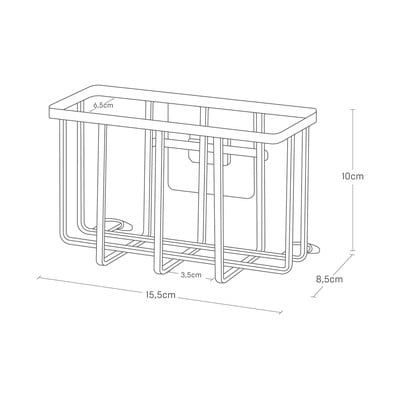 Il cestino si fissa facilmente ai due ganci da parete inclusi nella confezione. La pellicola autoadesiva di fissaggio garantisce un fissaggio sicuro su superfici lisce e non porose senza bisogno di forare.