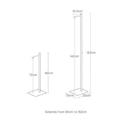 Il supporto Tower del brand YAMAZAKI è un accessorio pratico ed elegante per la casa. Grazie al suo design minimalista e alla robusta struttura in metallo, si adatta a diversi stili d'arredo. Il suo grande vantaggio è la possibilità di regolare l'altezza in un intervallo da 80 a 152 cm, il che lo rende un accessorio versatile. Vi si possono appendere, ad esempio, una lanterna, una fioriera sospesa o qualsiasi altra decorazione da esporre con stile.