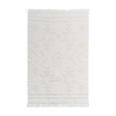 Lavabile, in cotone, bouclé, a pelo piatto, con orlo a frange, bianco, 120x170 cm