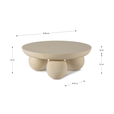 In mango massiccio, beige, ø 90 cm, altezza totale 35 cm