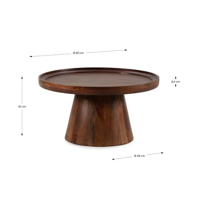 In mango massiccio, marrone scuro, ø 80 cm, altezza totale 40 cm