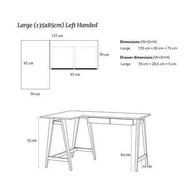 La scrivania Luka è dotata di un cassetto di 35 x 28,5 x 5 cm. Avrete tutto a portata di mano e allo stesso tempo un ambiente di lavoro spazioso.