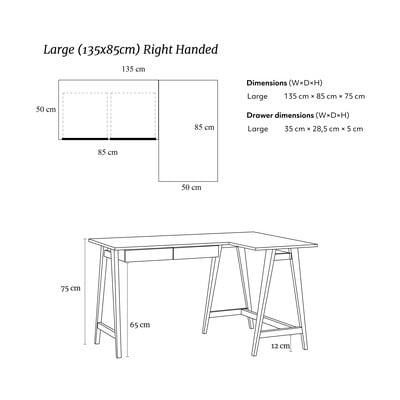 La scrivania Luka è dotata di un cassetto di 35 x 28,5 x 5 cm. Avrete tutto a portata di mano e allo stesso tempo un ambiente di lavoro spazioso.