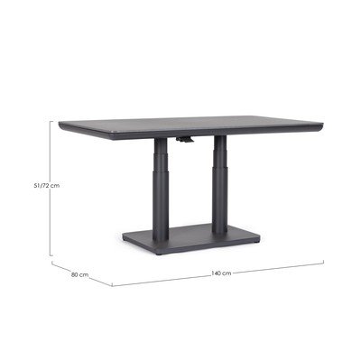 Miguel del brand Bizzotto è un tavolo da pranzo da giardino che diventerà una pratica aggiunta alla tua terrazza o al tuo giardino. La sua struttura è in alluminio verniciato a polvere, mentre il piano del tavolo è in pietra sinterizzata di 11 mm di spessore. Questo materiale è una pietra naturale lavorata ad alte temperature, che le conferisce resistenza. Grazie alla maniglia, il tavolo può essere facilmente regolato in altezza da 51 a 72 cm, cosa che potrai apprezzare in diverse occasioni. Le dimensioni complessive del tavolo sono 140x80 cm.