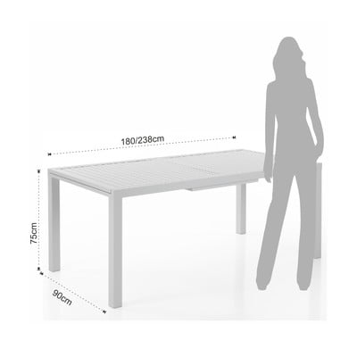 In alluminio, allungabile, bianco, 90x180 cm, lunghezza dopo l'apertura 238 cm