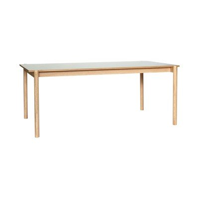 Il suo piano è realizzato in linoleum liscio e poggia su solide gambe rotonde in rovere massiccio, che gli conferiscono un aspetto pulito e stabile. Il design robusto ed elegante rende questo tavolo ideale per la vita di tutti i giorni e diventerà il luogo perfetto per i pasti in famiglia e le riunioni formali.