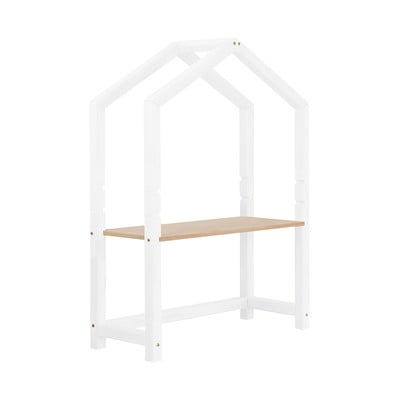 Il tavolo, con la sua struttura a casetta e il piano naturale, combina funzionalità e design giocoso. Grazie all'altezza del piano regolabile, questo tavolo crescerà con il vostro bambino.