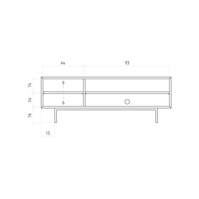 In rovere massiccioTrattamento della superficie: verniciatura a olioDi colore naturaleLarghezza totale 144 cmAltezza totale 50 cmProfondità totale 45 cm