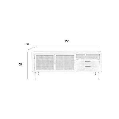 In rattan, in MDF, color crema, larghezza totale 150 cm, altezza totale 55 cm, profondità totale 38 cm