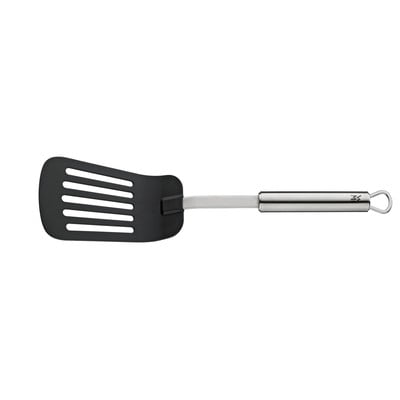 Gli utensili da cucina della gamma Profi Plus di WMF sono caratterizzati da una qualità superiore e da una lavorazione funzionale. Sono costituiti principalmente da acciaio inossidabile Cromargan®, noto per la sua resistenza ai graffi e alla corrosione. Può sopportare senza problemi temperature fino a 260°C. Inoltre, grazie al pratico gancio per appenderlo, può essere tenuto sempre a portata di mano quando si cucina.