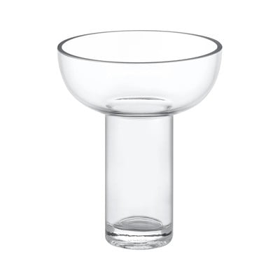 Questo vaso in vetro fatto a mano presenta una forma originale che combina un'ampia parte superiore a forma di ciotola con una solida base cilindrica. Con il suo design pulito e la sua finitura trasparente, diventerà un elemento sobrio ma imperdibile della tua casa.