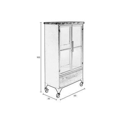 Su ruote, in metallo, nera, larghezza totale 65 cm, altezza totale 105 cm, profondità totale 35 cm
