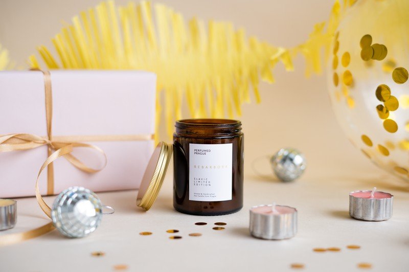 Profumata, in cera di soia, al profumo di prugna/al profumo di mela/al profumo di rabarbaro/al profumo di uva spina, tempo di combustione 40 h, numero di stoppini 1 pz, ø 6,5 cm, altezza totale 8 cm
